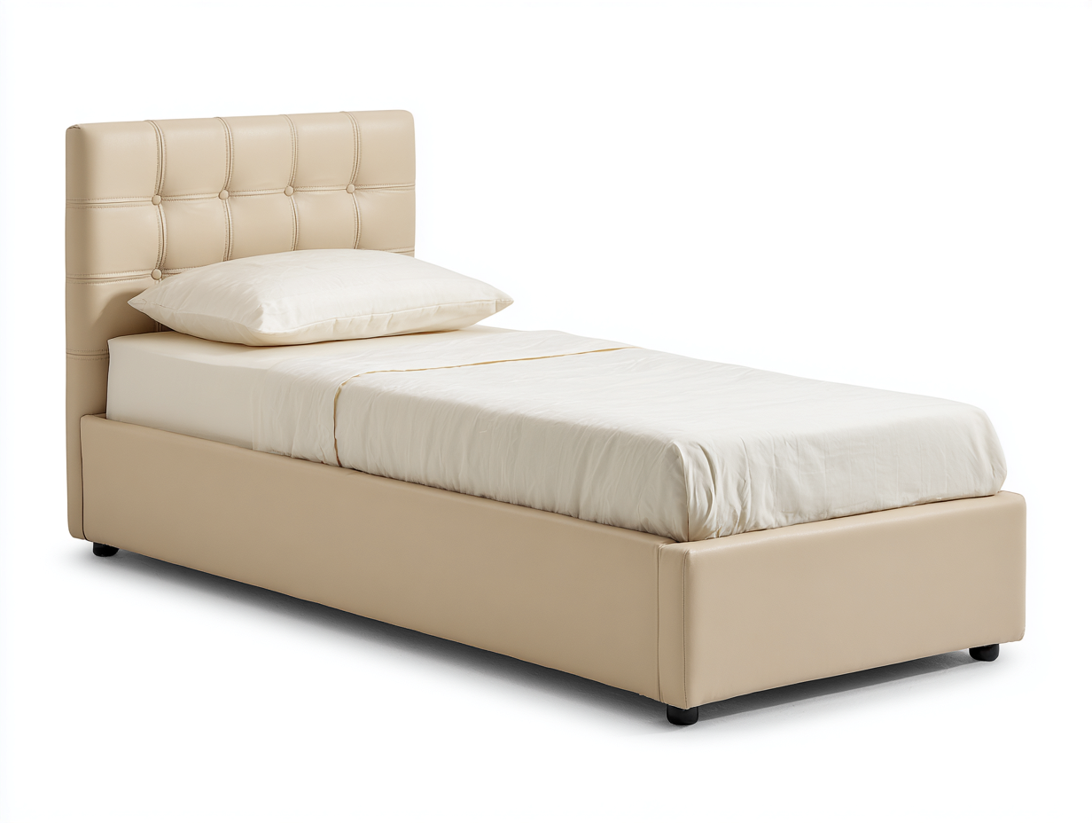 Letto singolo - Similpelle-Legno - 208x100x128 cm - Beige - Design classico