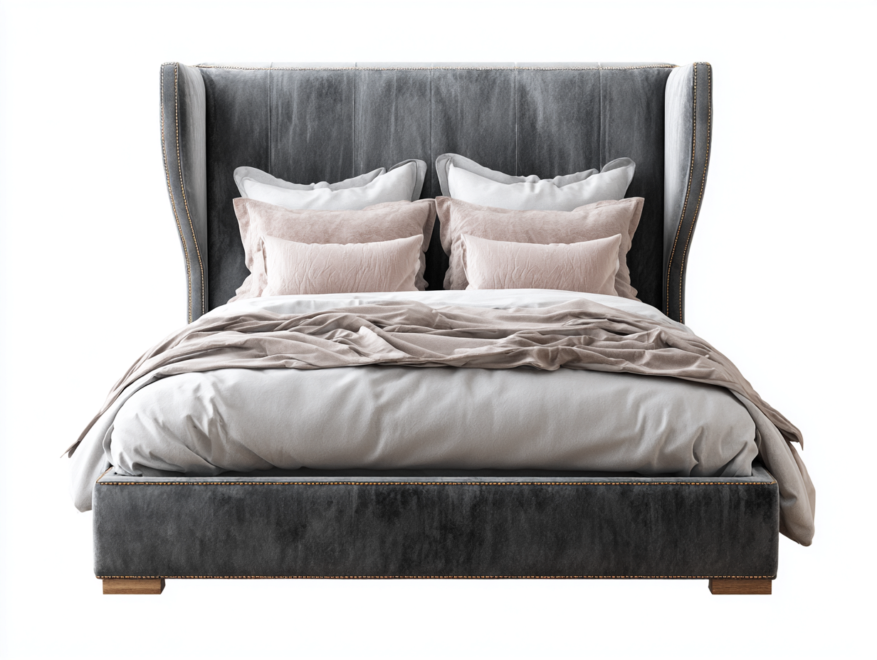 Letto matrimoniale-Tessuto-Legno-216x178x118 cm-Grigio-Design moderno