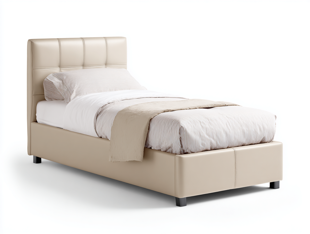 Letto singolo - Similpelle-Legno - 204x98x110 cm - Beige - Design moderno