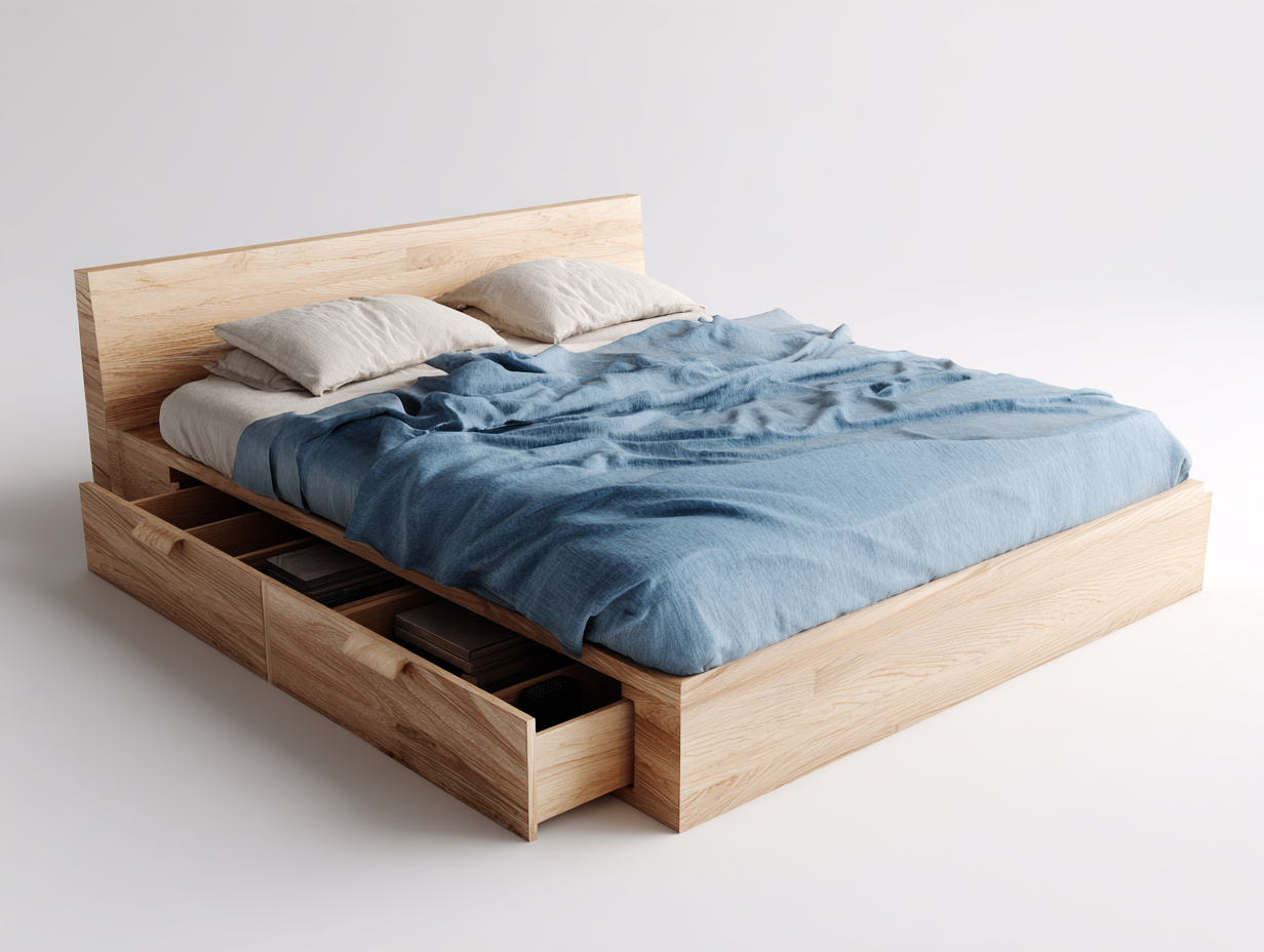 Letto matrimoniale-Legno-216x176x90 cm-Naturale-Design moderno