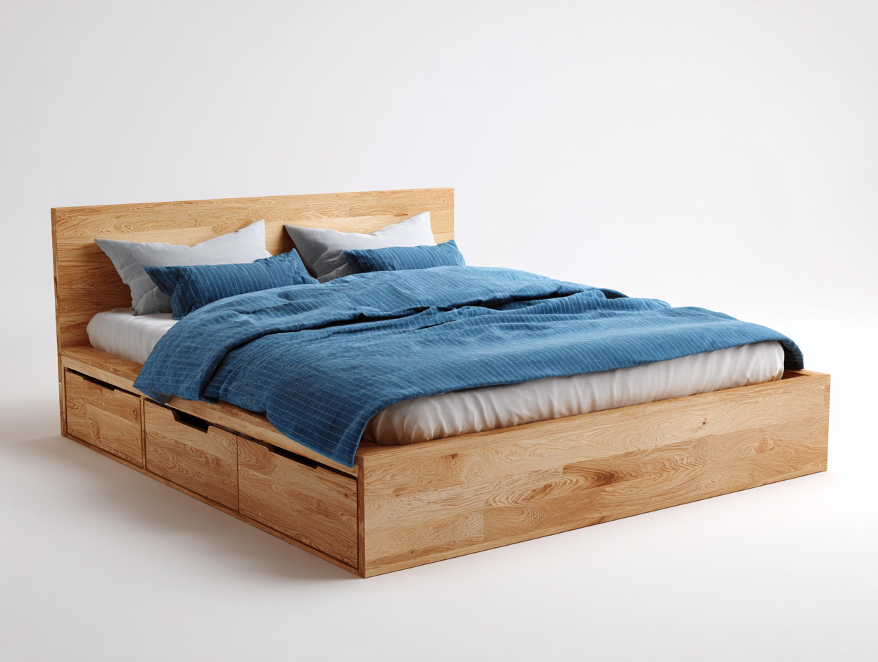 Letto matrimoniale-Legno-222x182x96 cm-Naturale-Design moderno